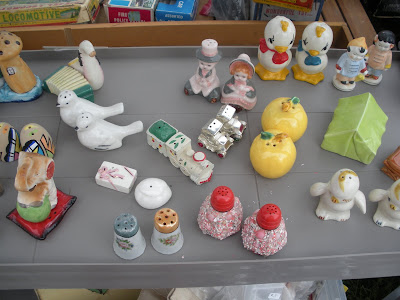 And, of course, salt and pepper shakers. I took home the cute little mouse sitting on the clock in the top center of the picture. Hickory, dickory dock. The mouse ran up the clock. Cute, right?